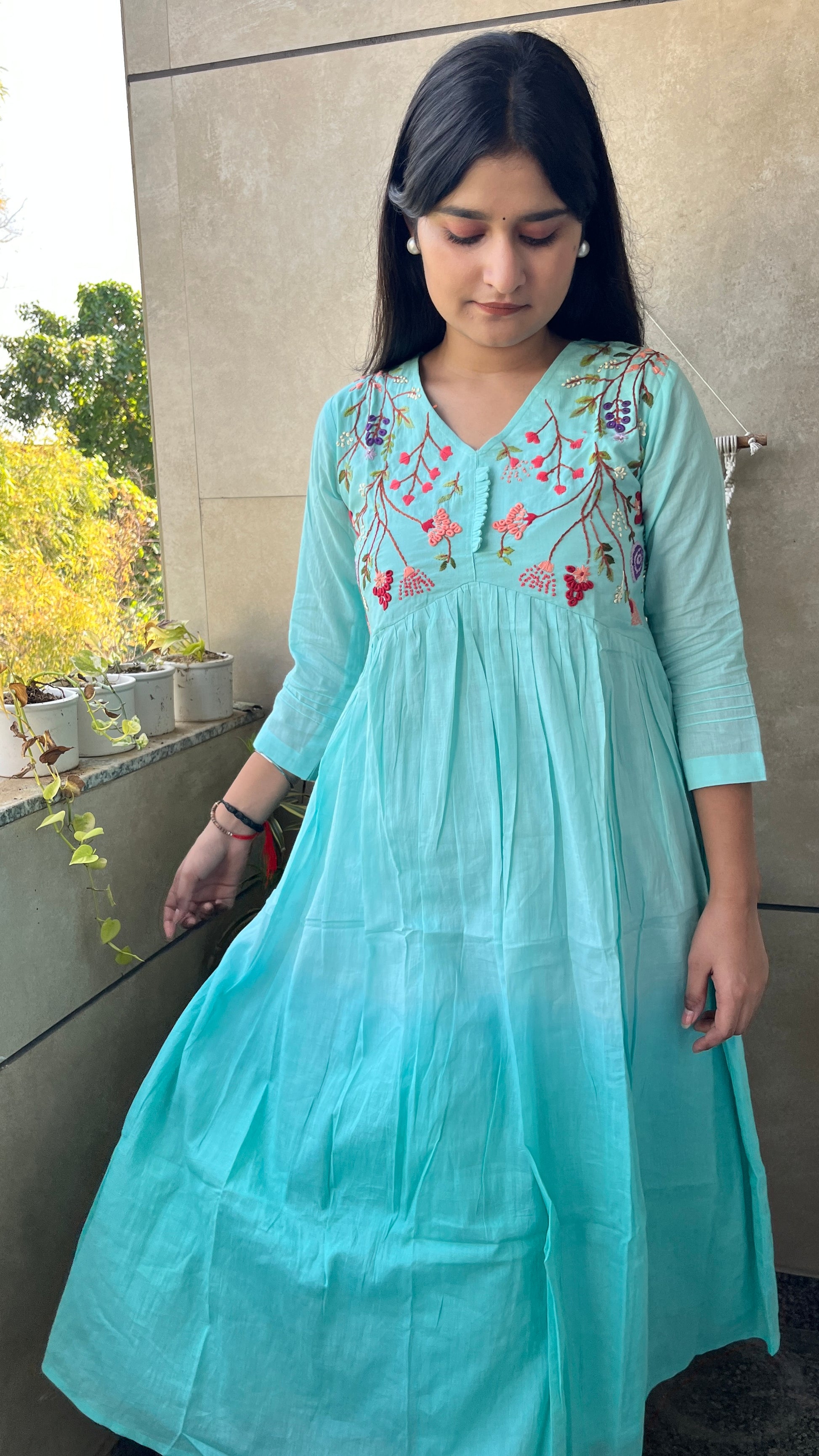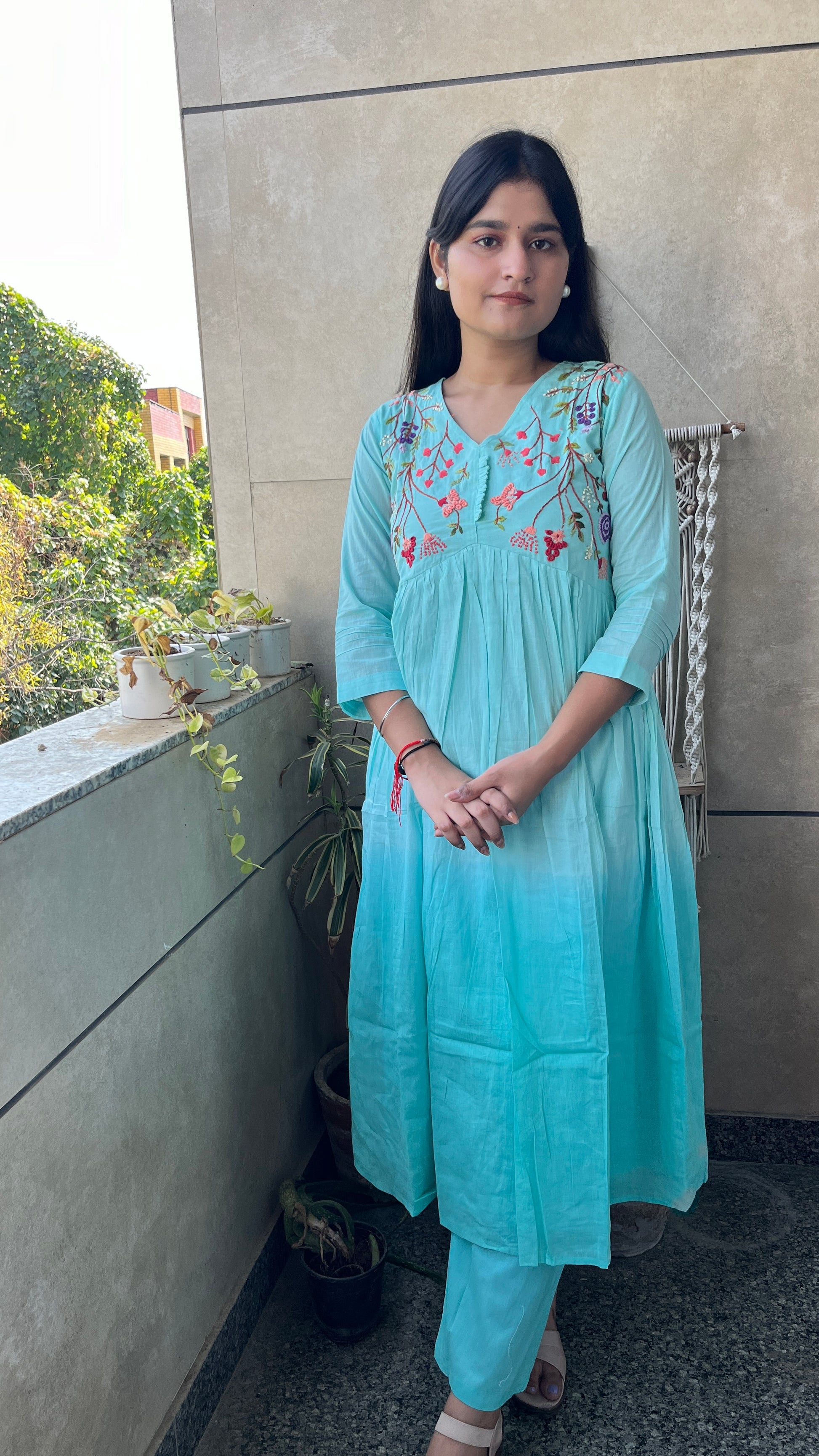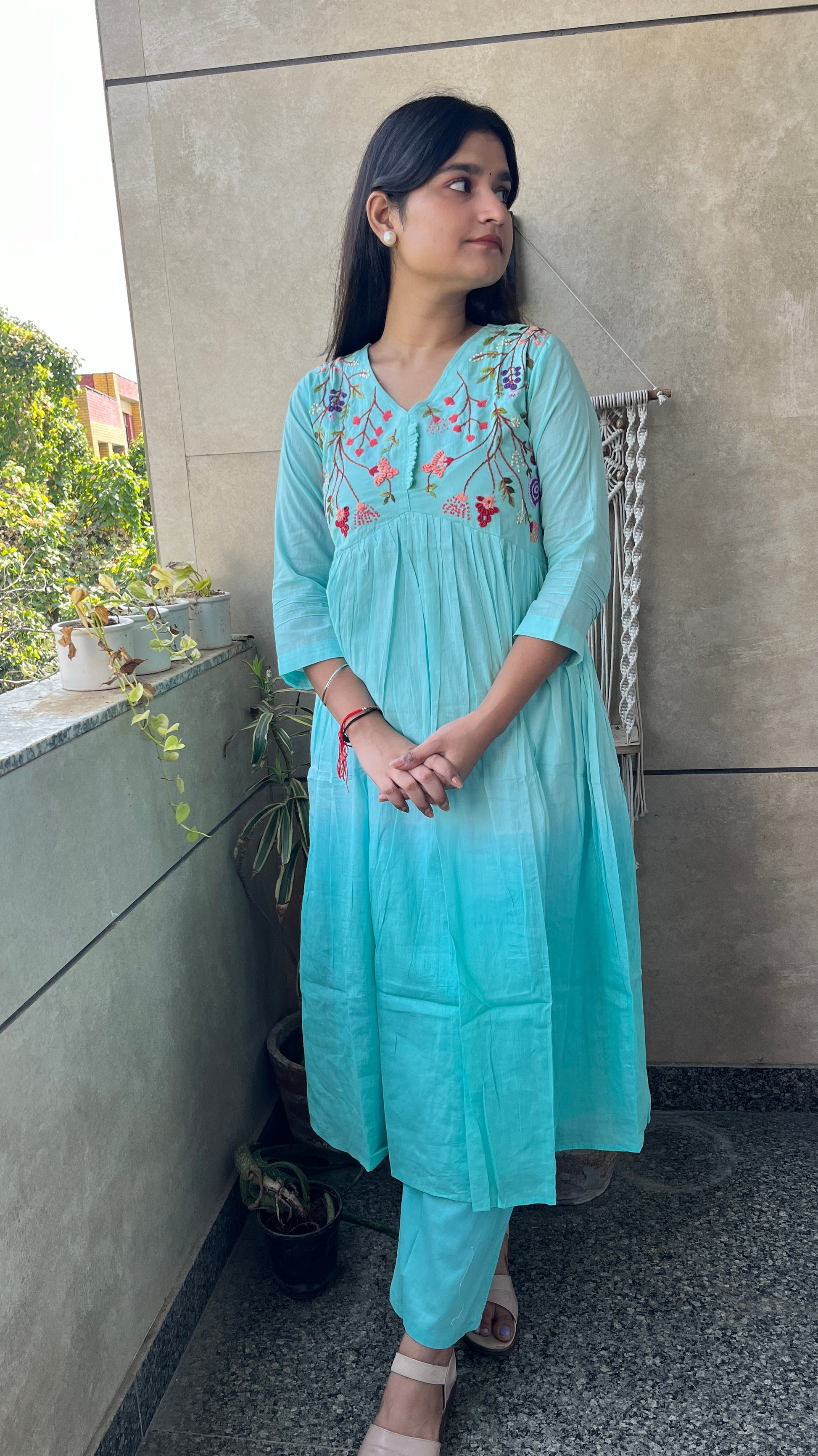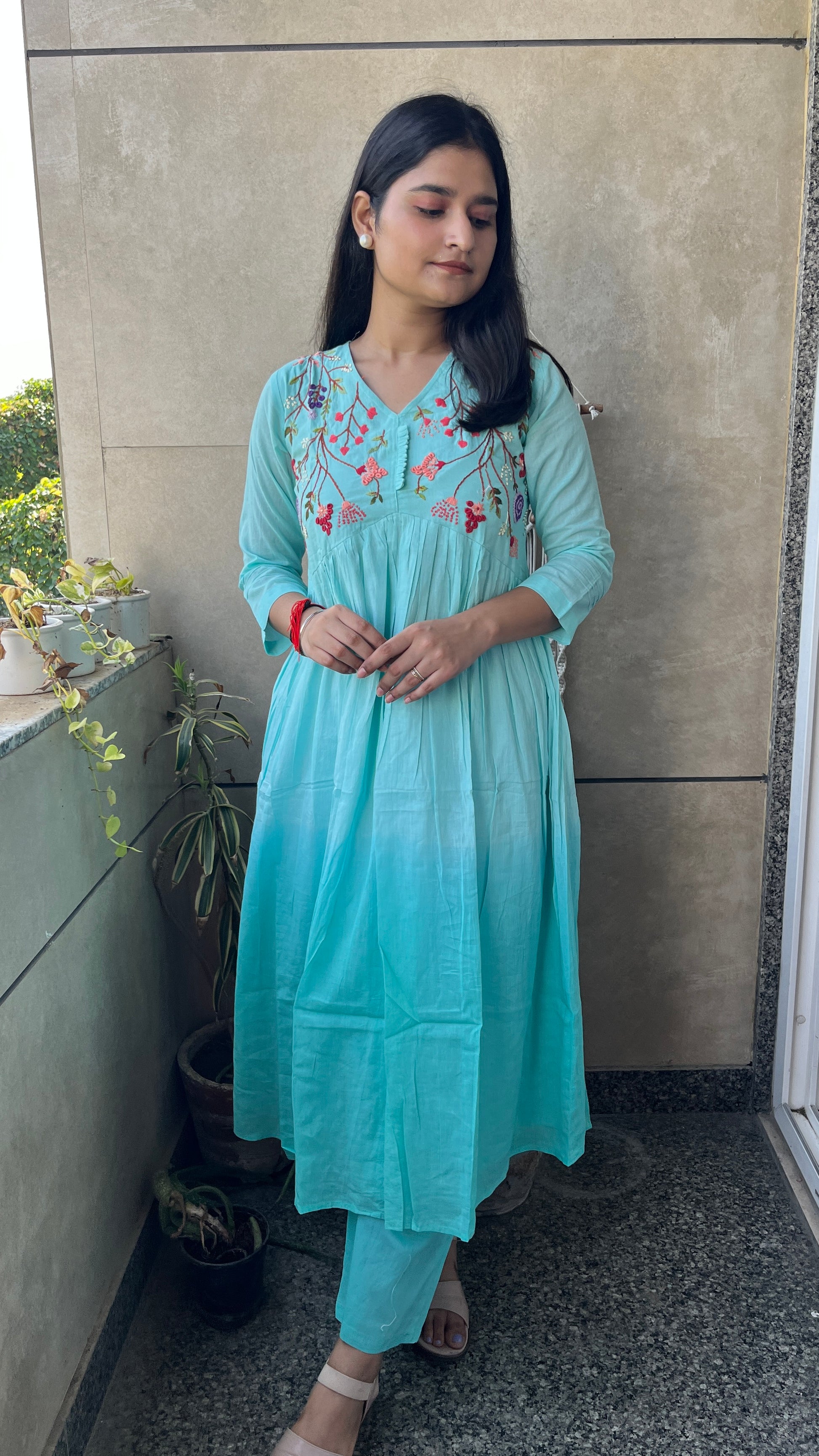 - The A-line alia design kurta and embroidered neck yok elevate the overall look of this set.