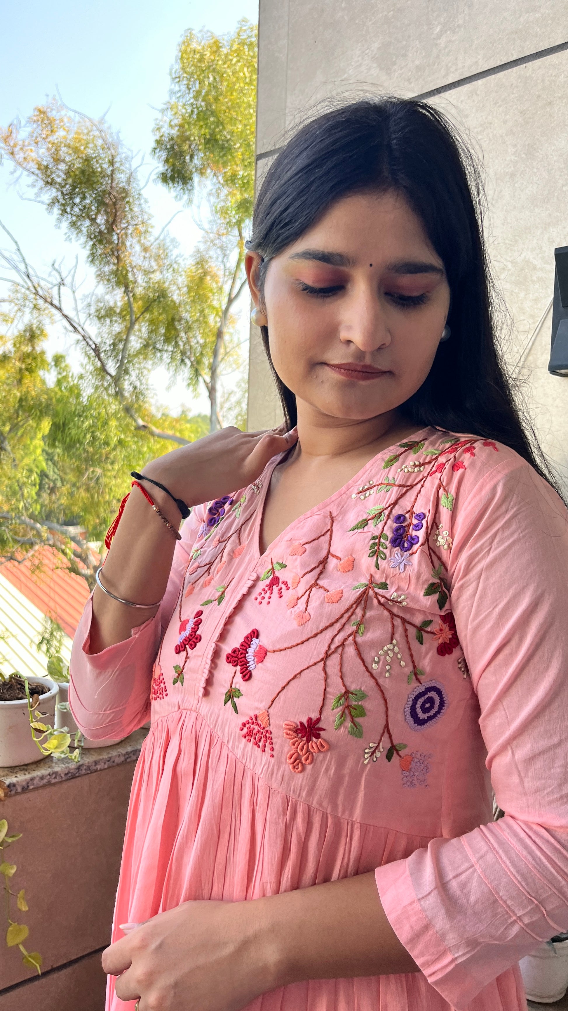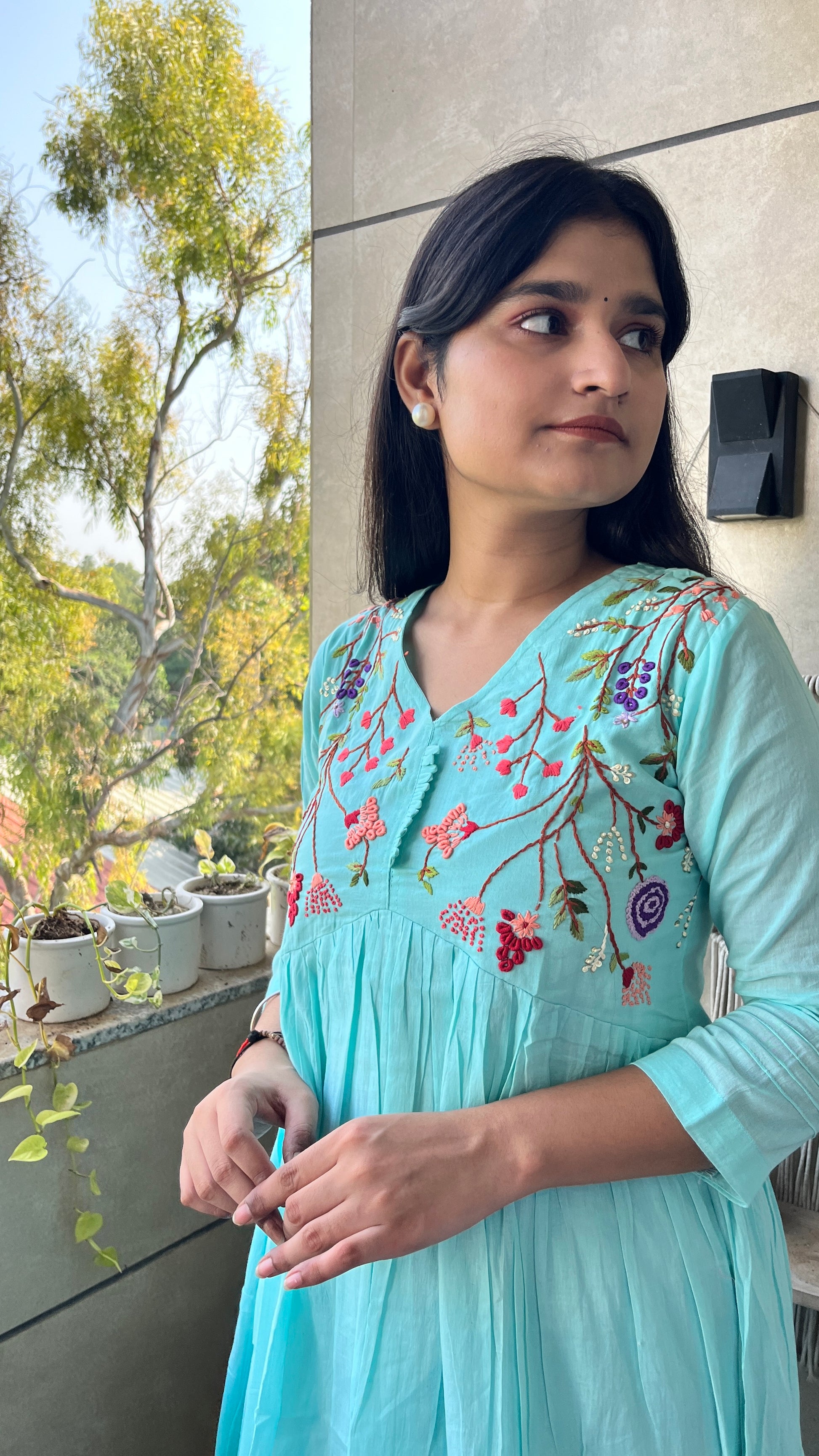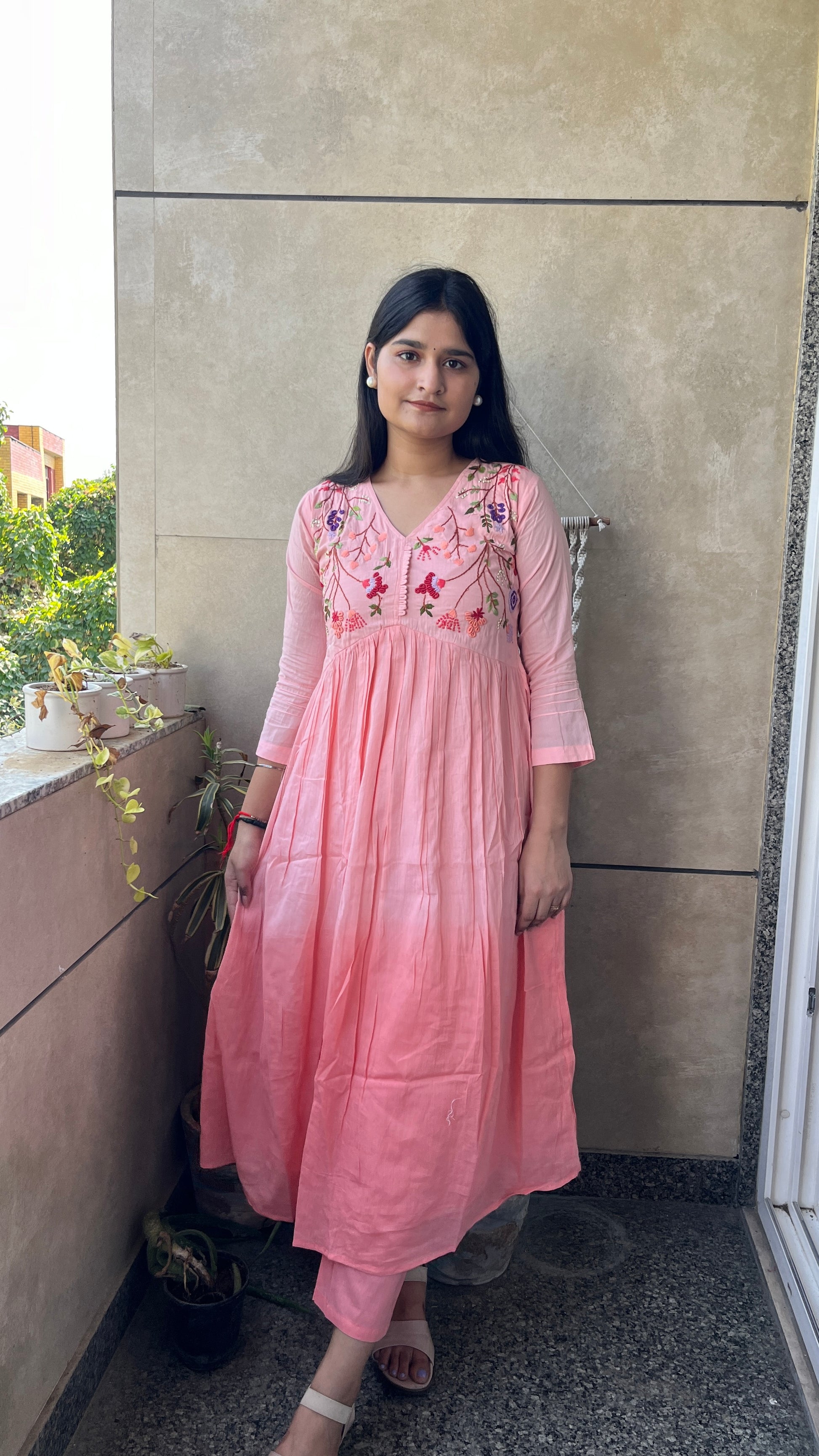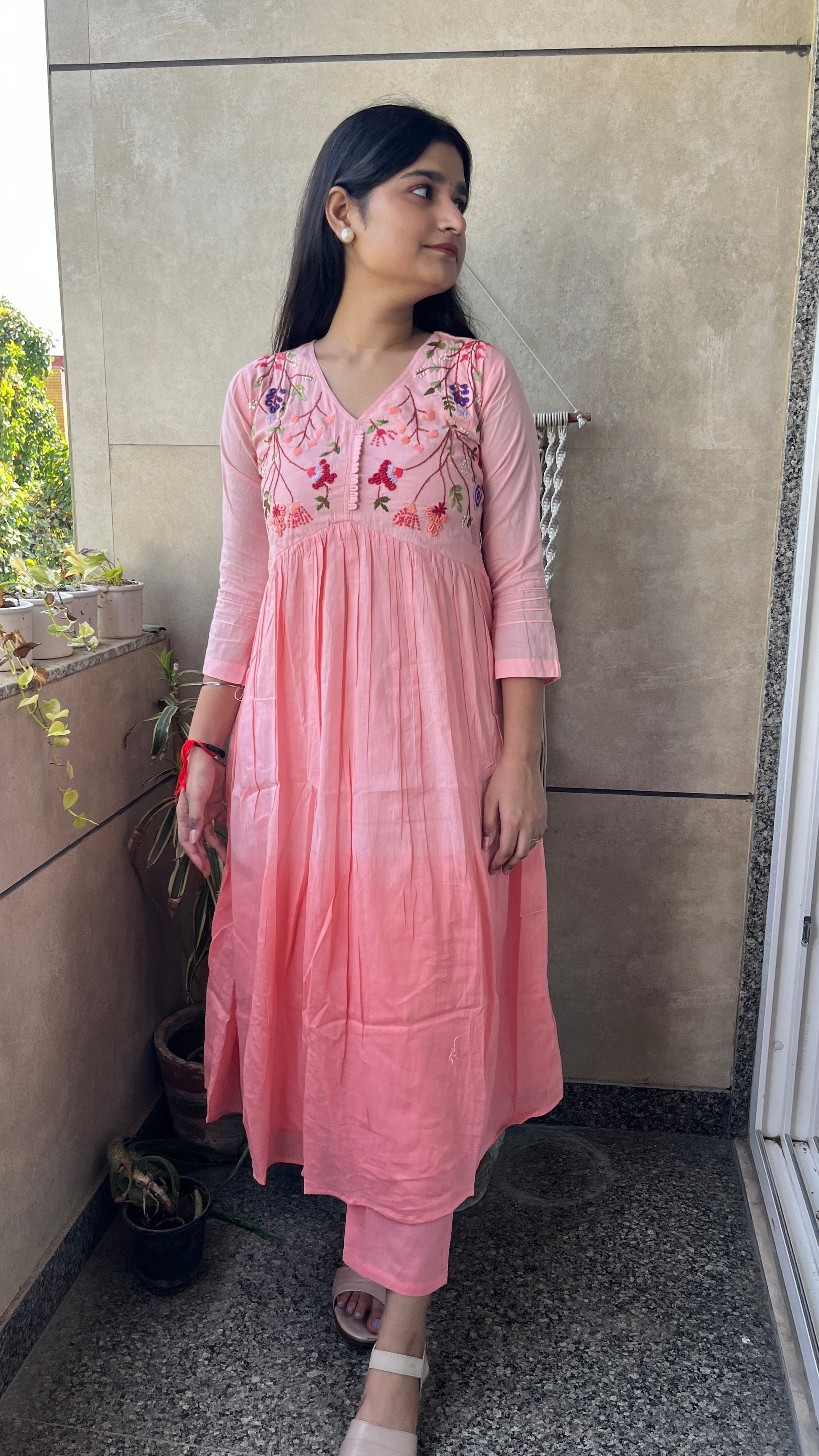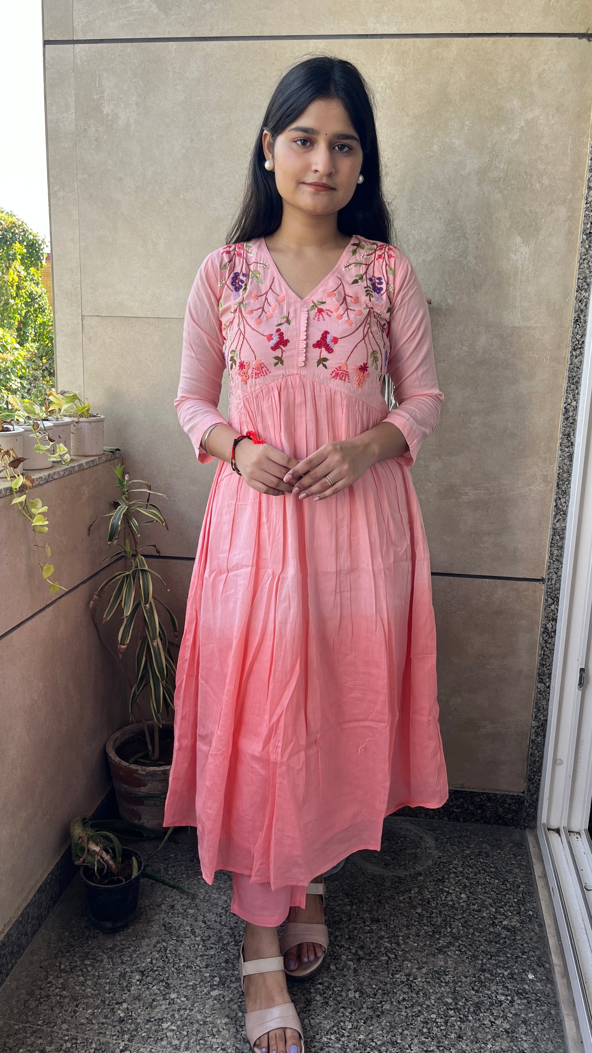 - The A-line alia design kurta and embroidered neck yok elevate the overall look of this set.