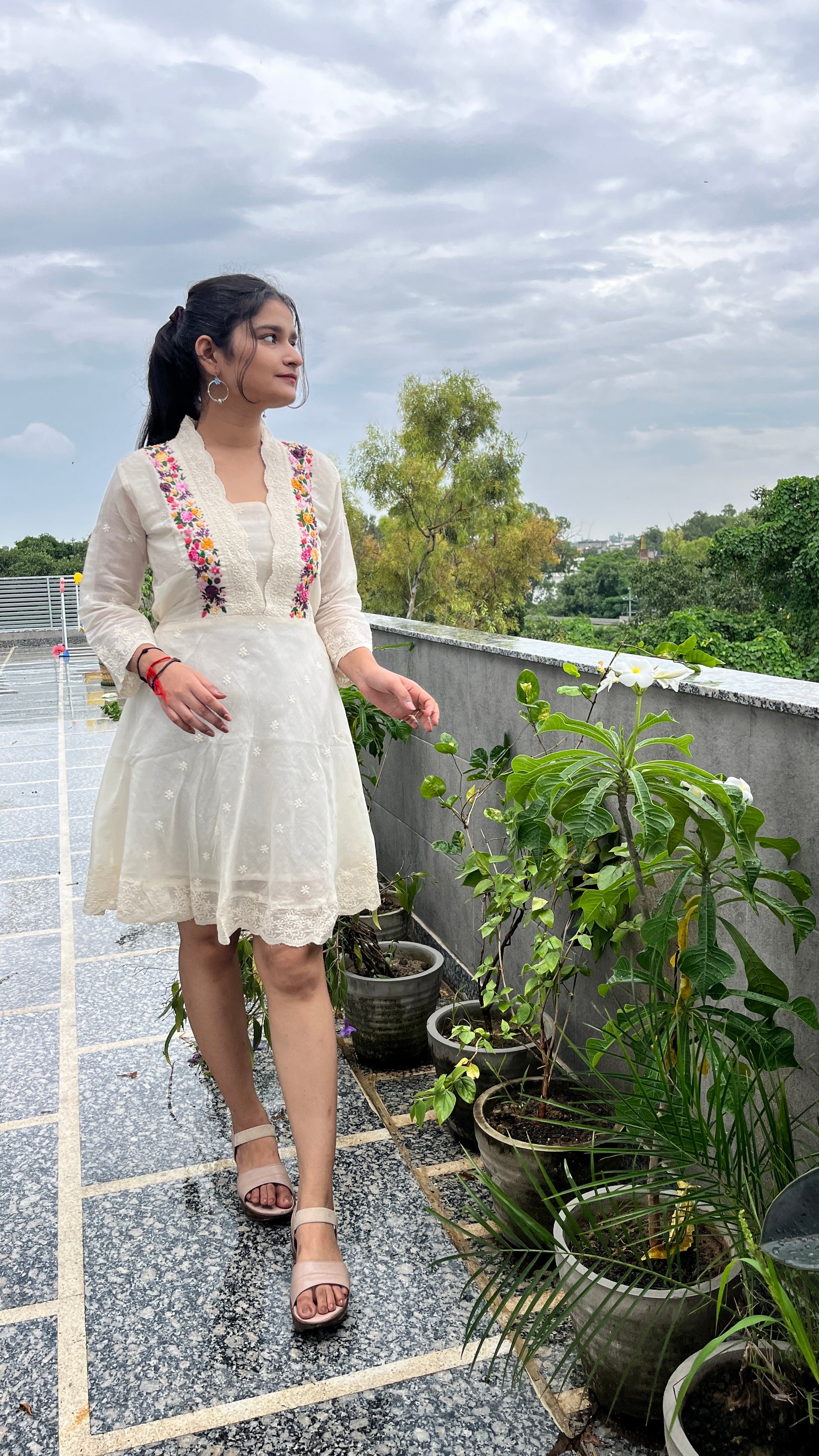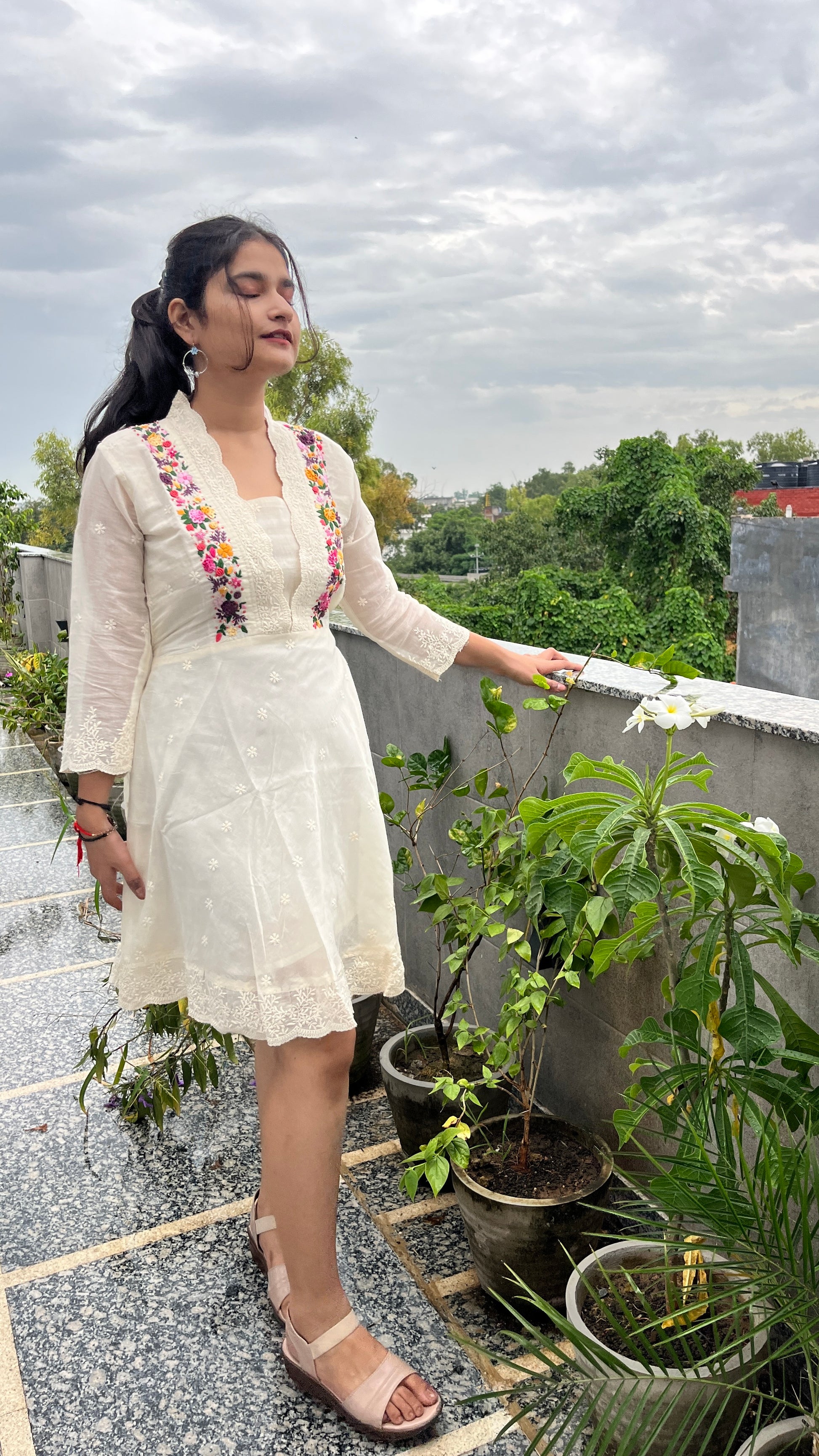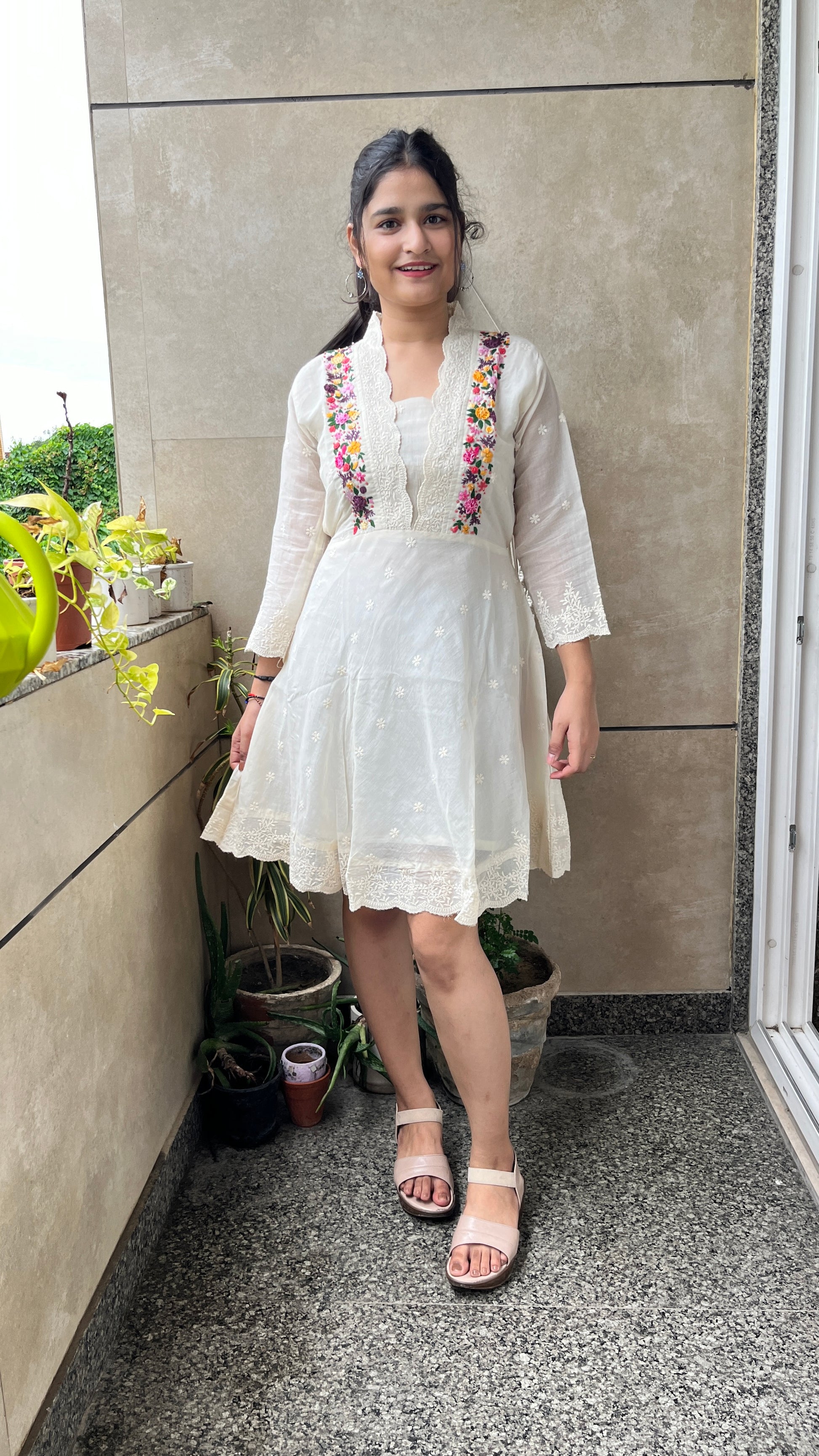 A very cute knee length dress. With length to be precise is 42 inches. The cloth is fully hand weaved and having lining
