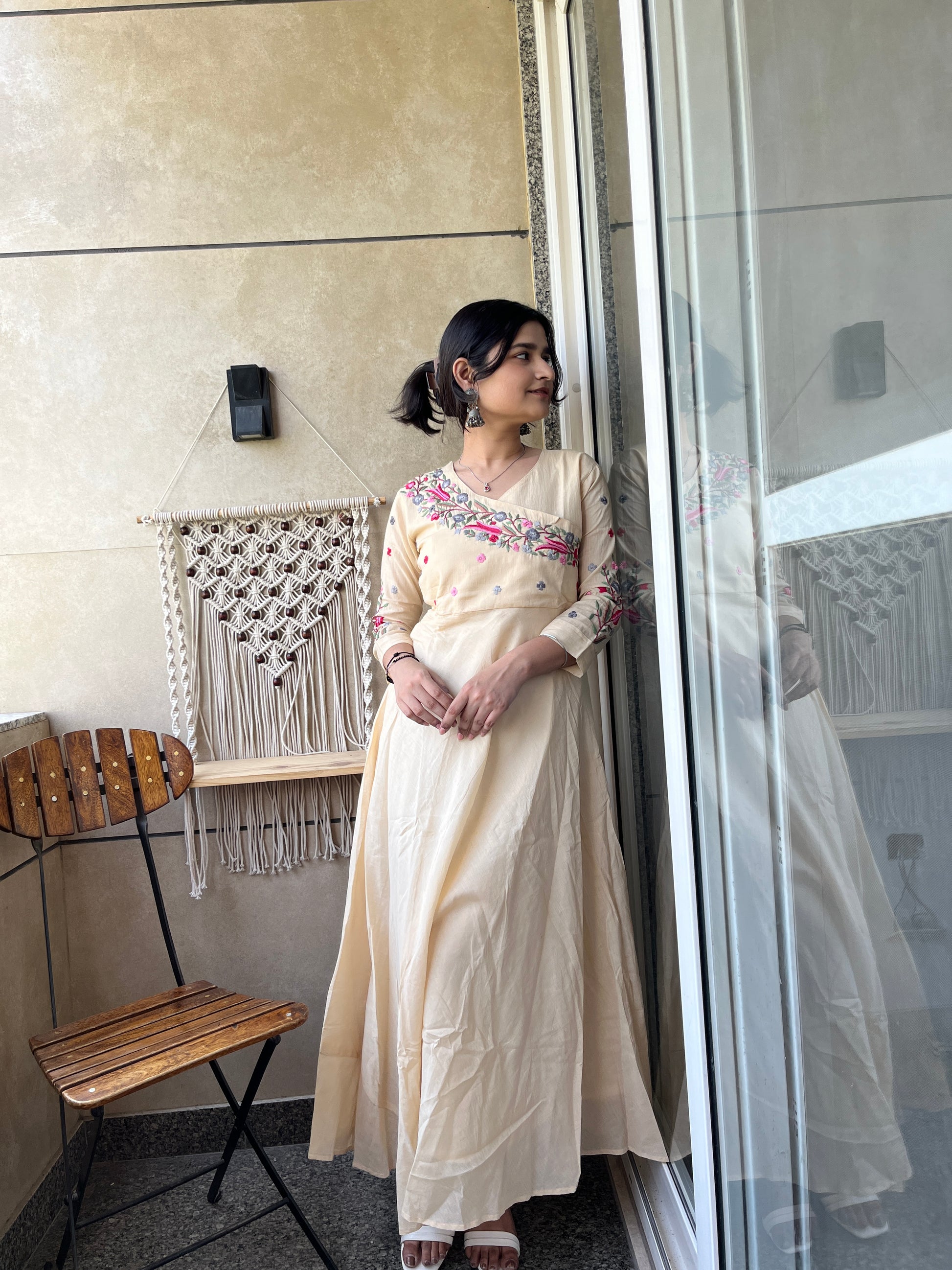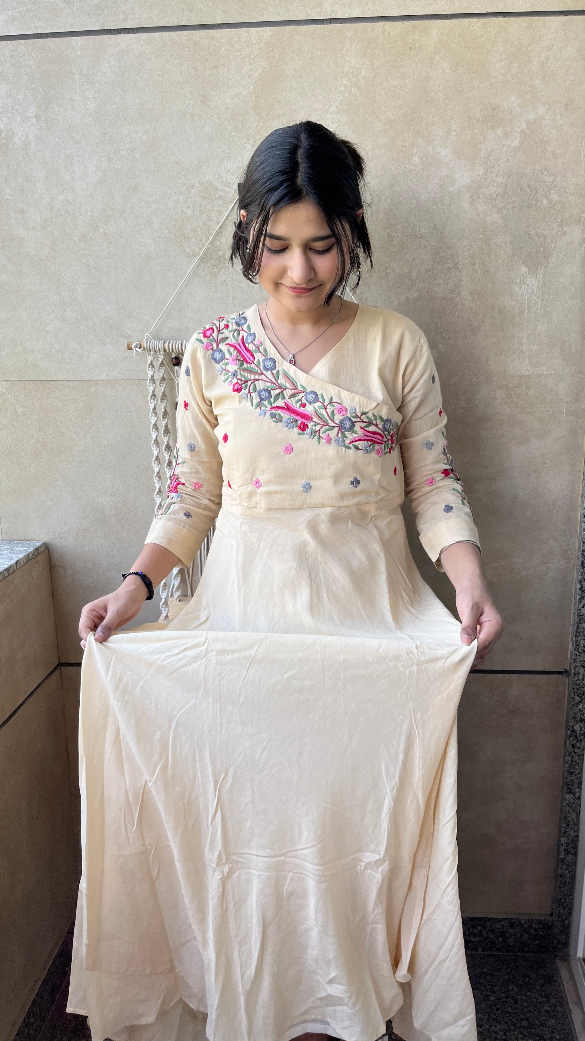 - The chest and sleeves boast intricate hand embroidery, giving it a chic anarkali style.