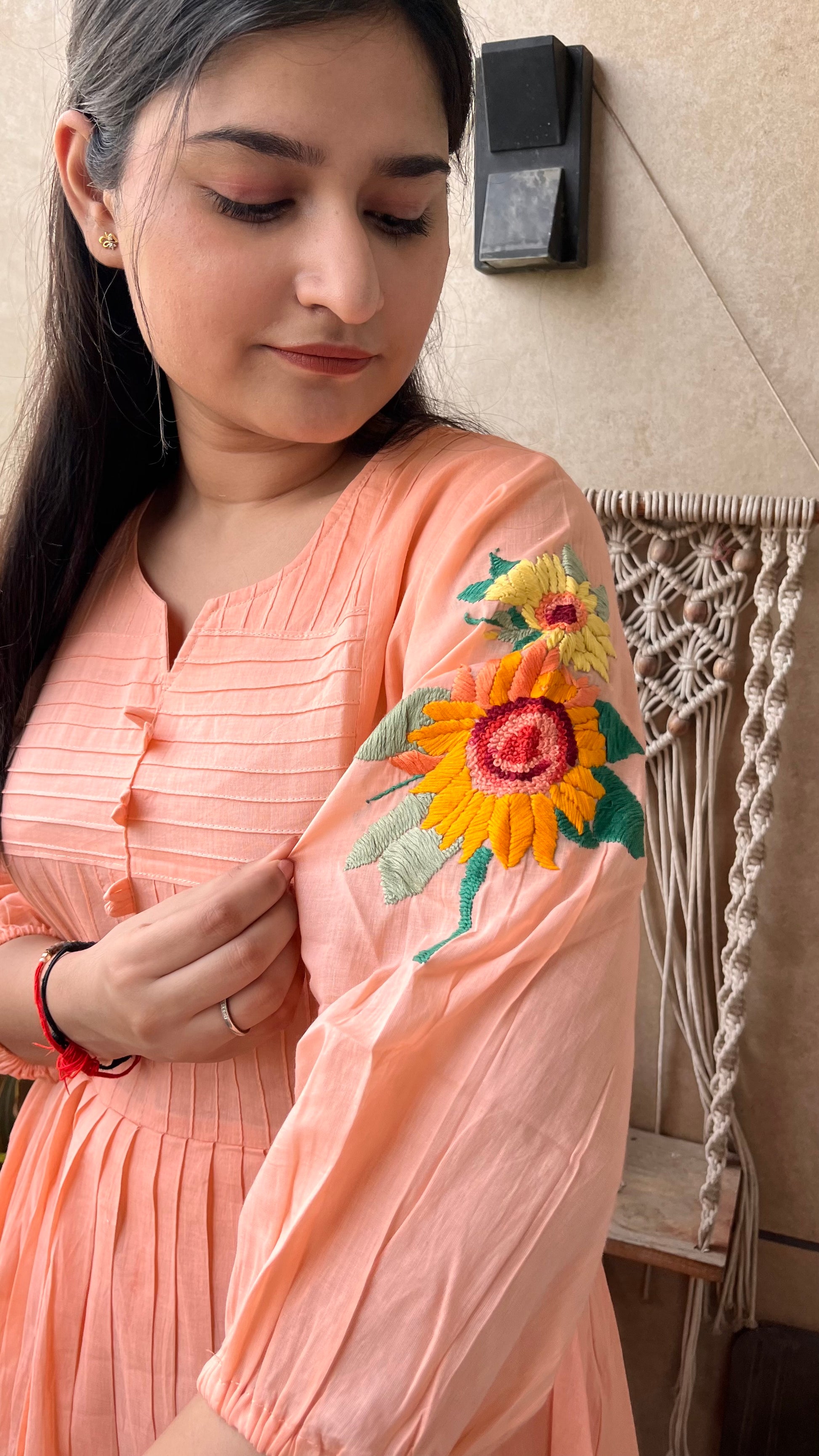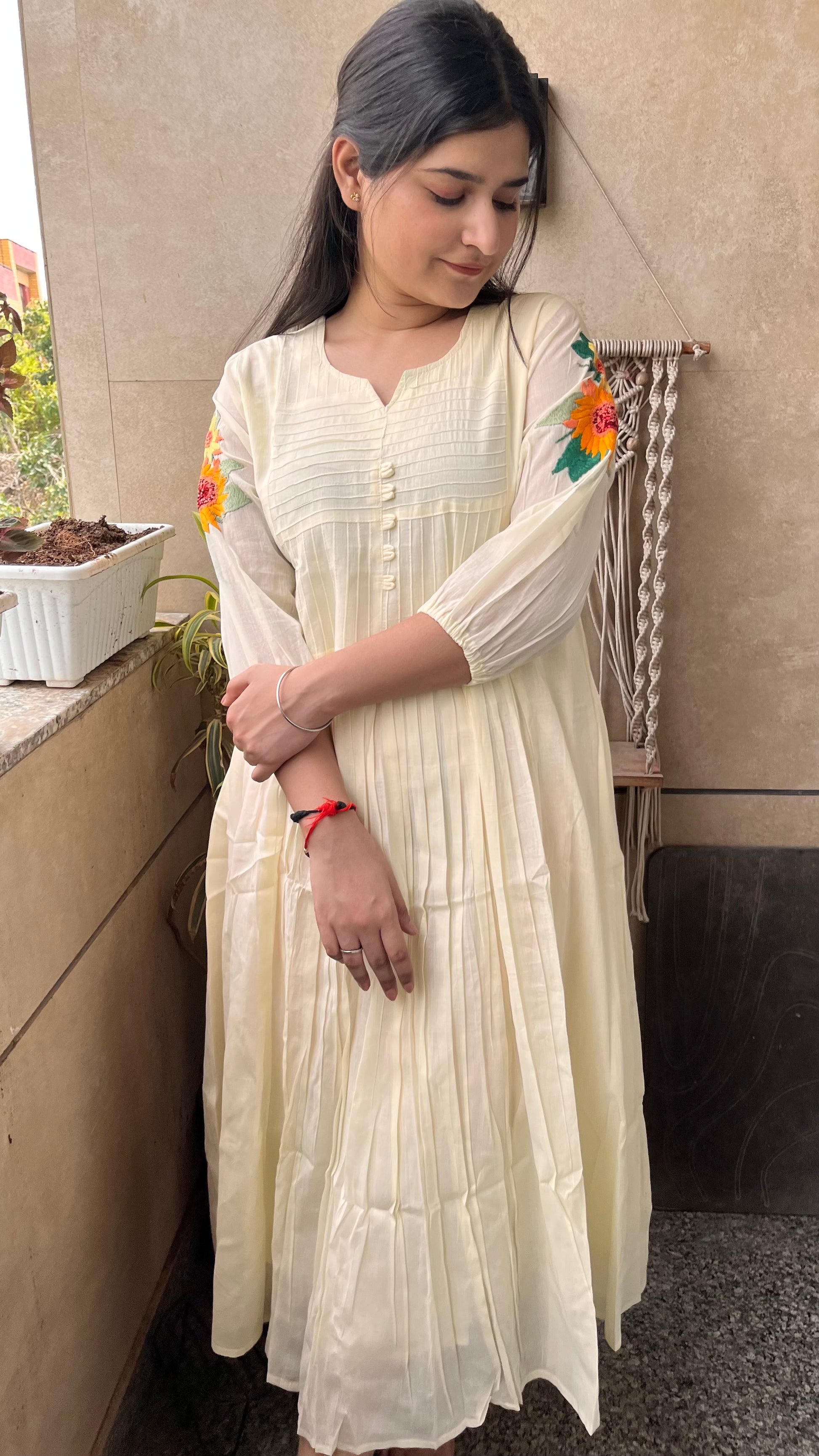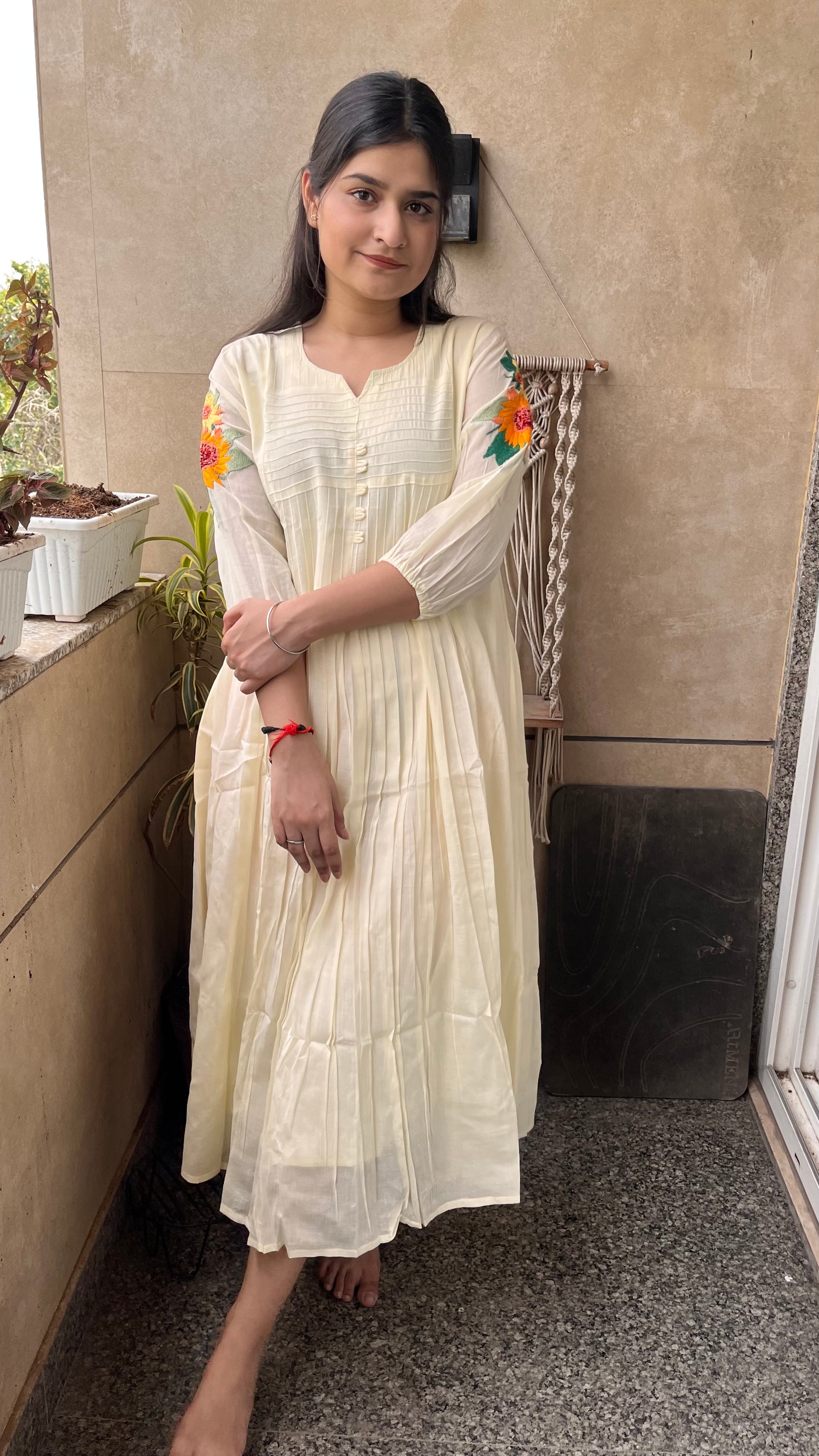 - Discover the charm of our elegant Mulmul Surajmukhi dress.
