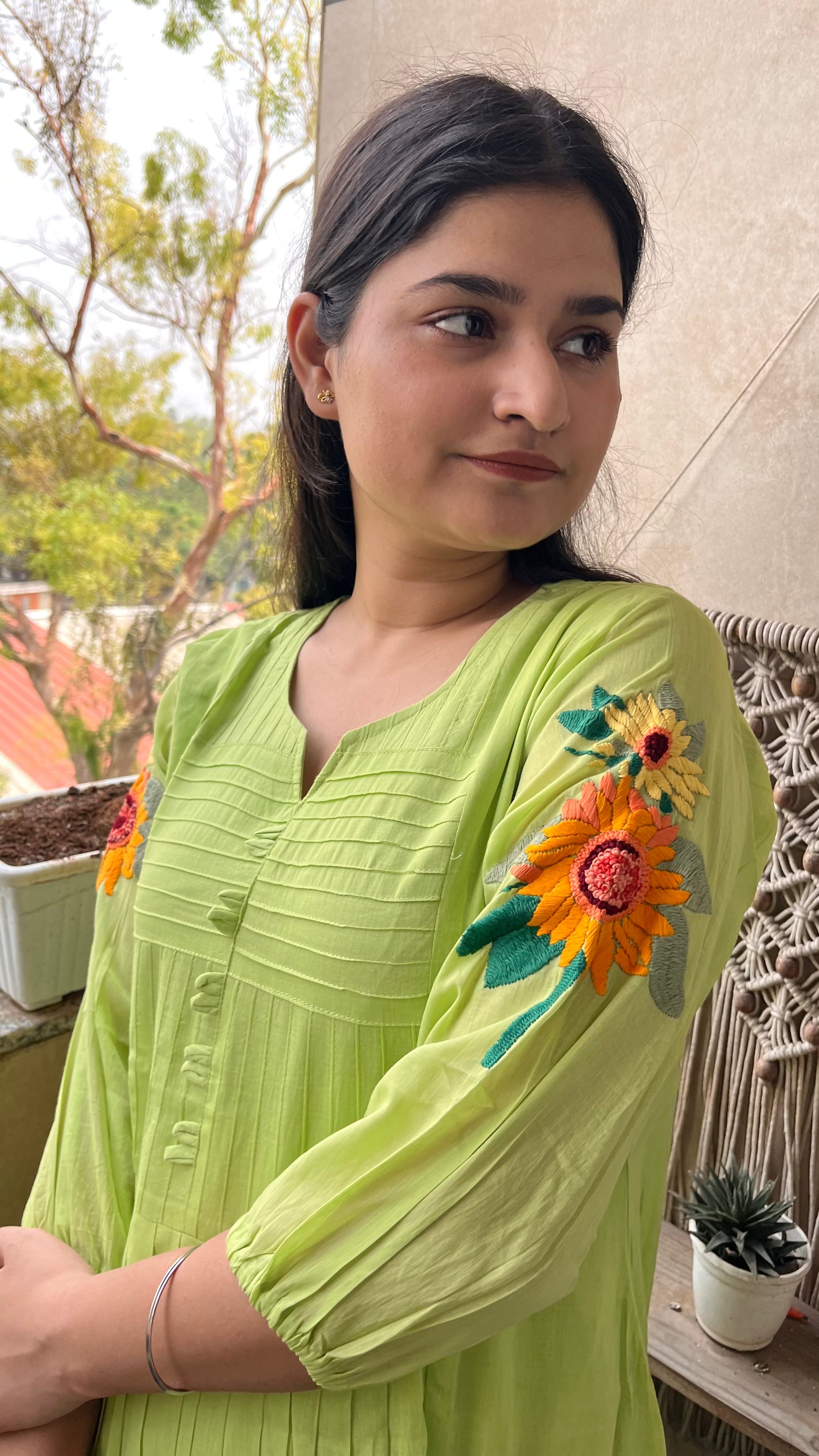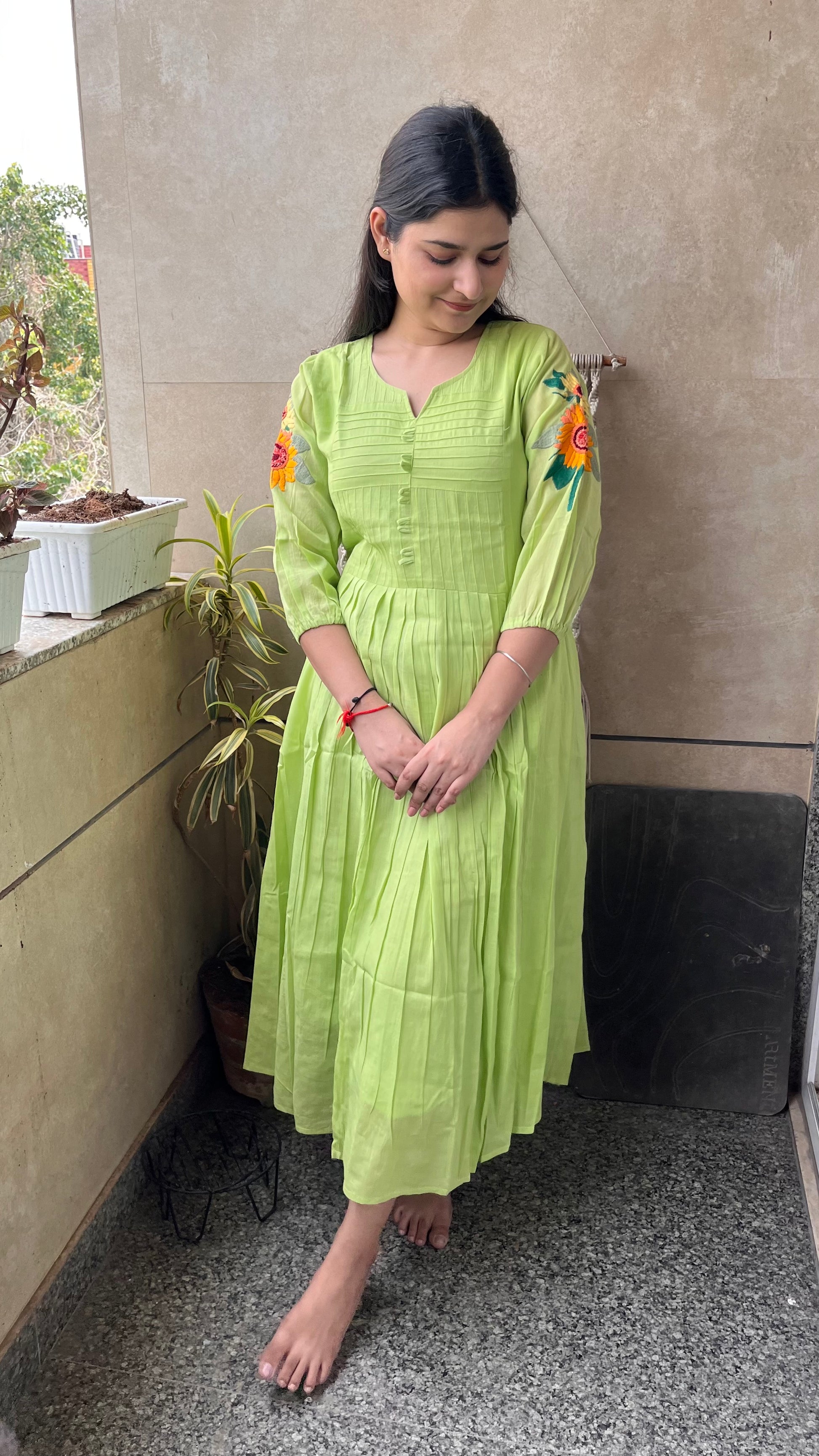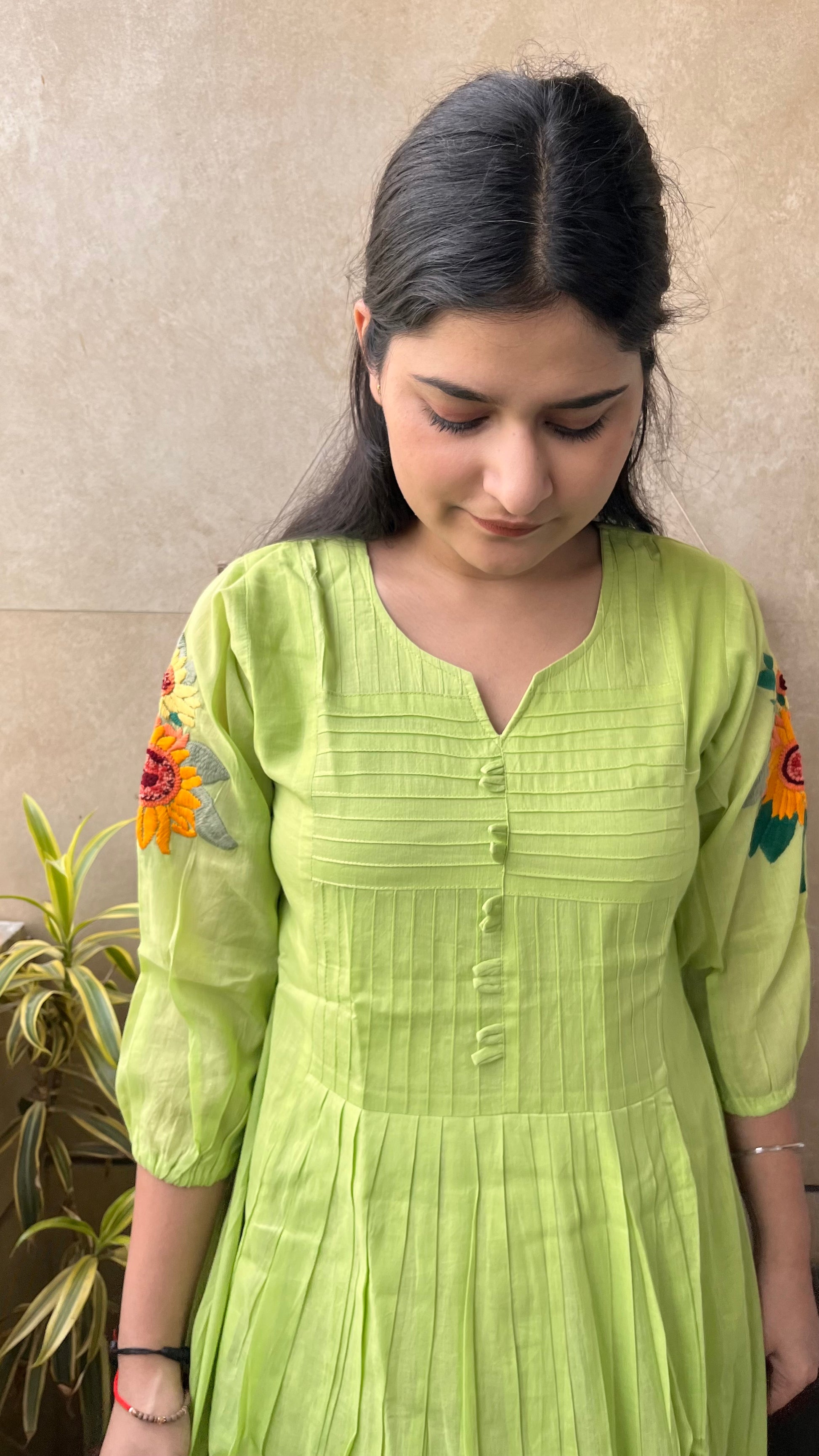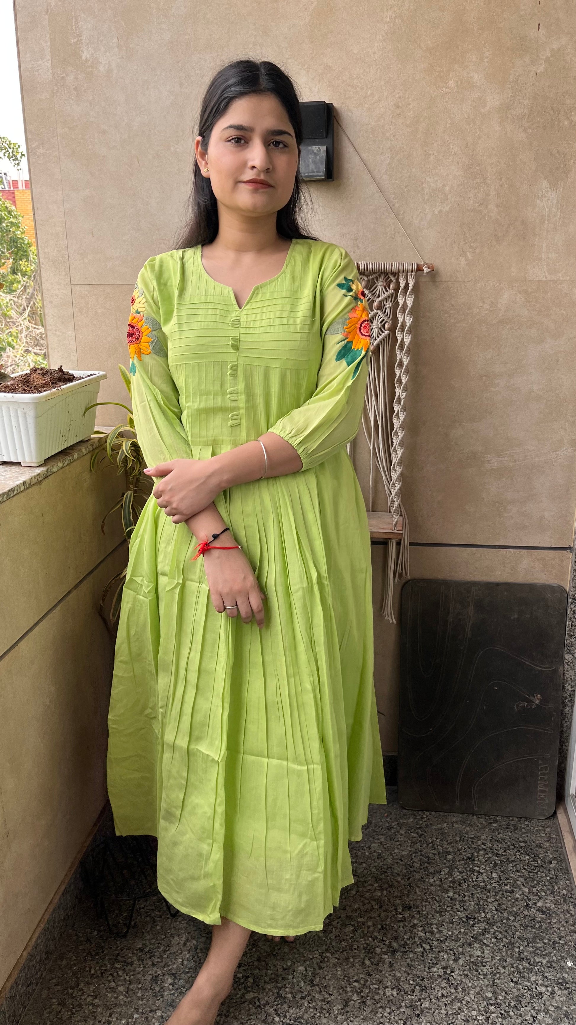 - Discover the charm of our elegant Mulmul Surajmukhi dress.