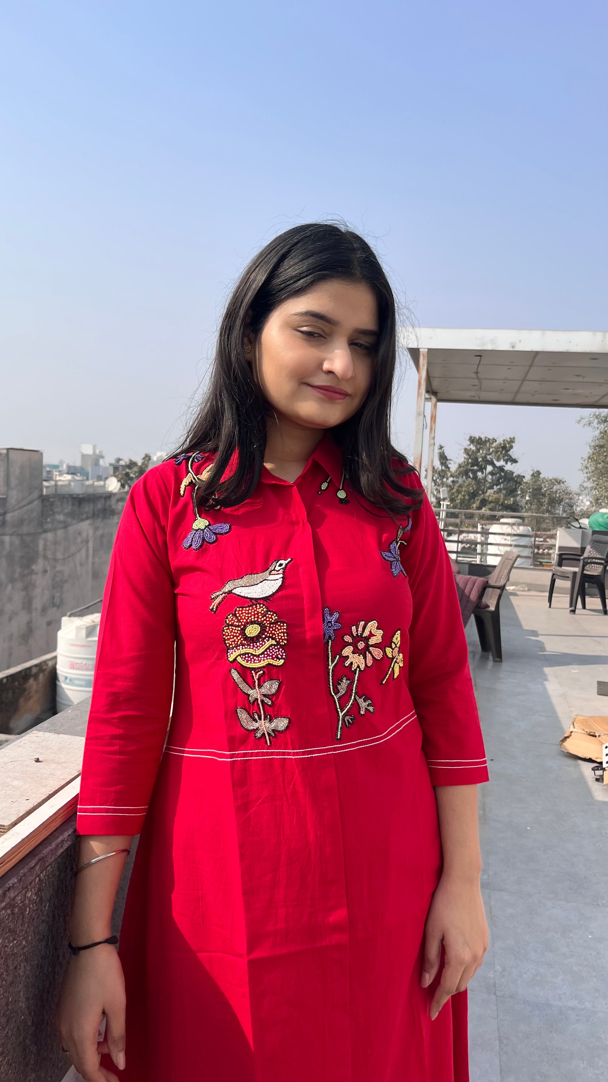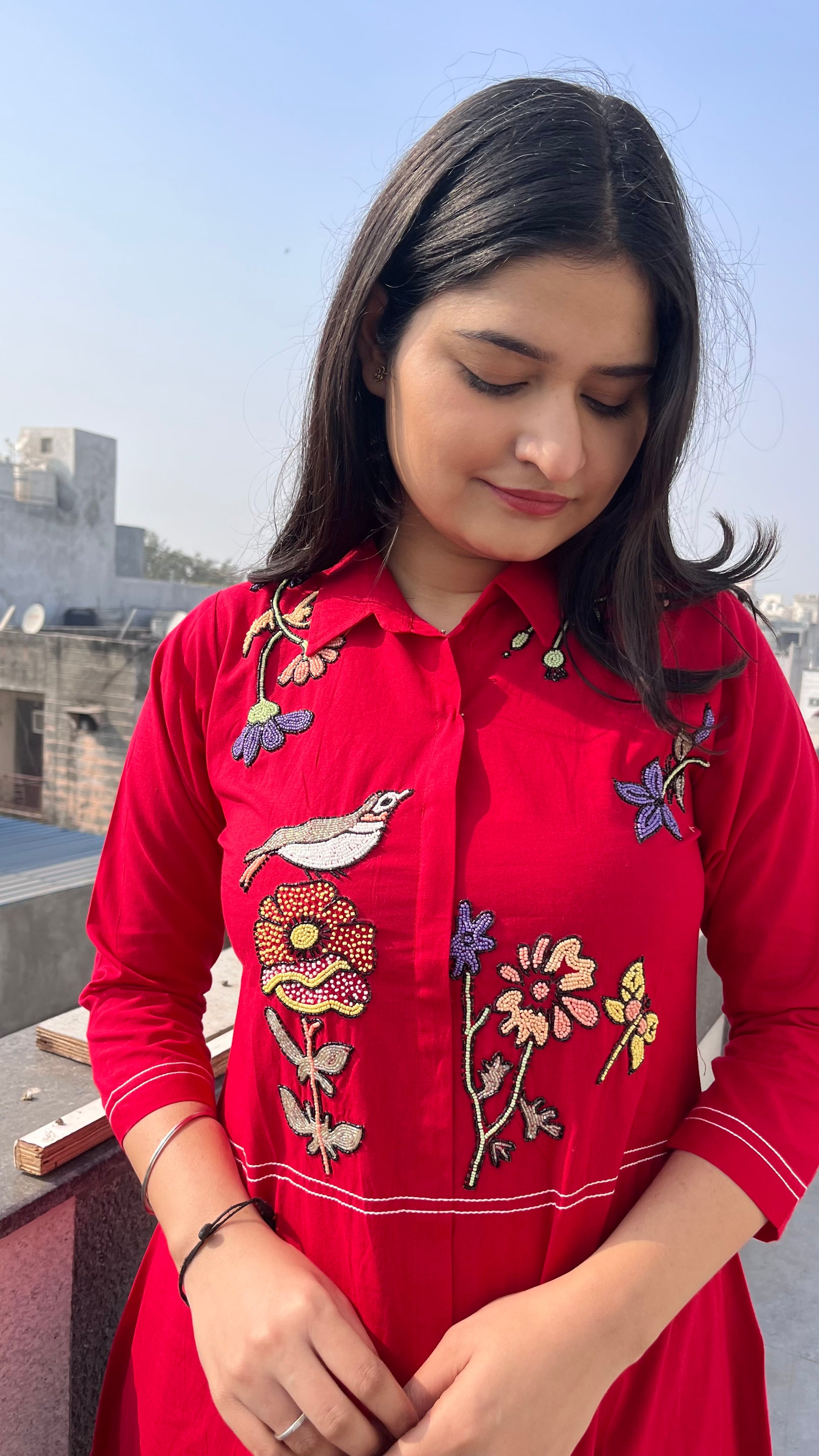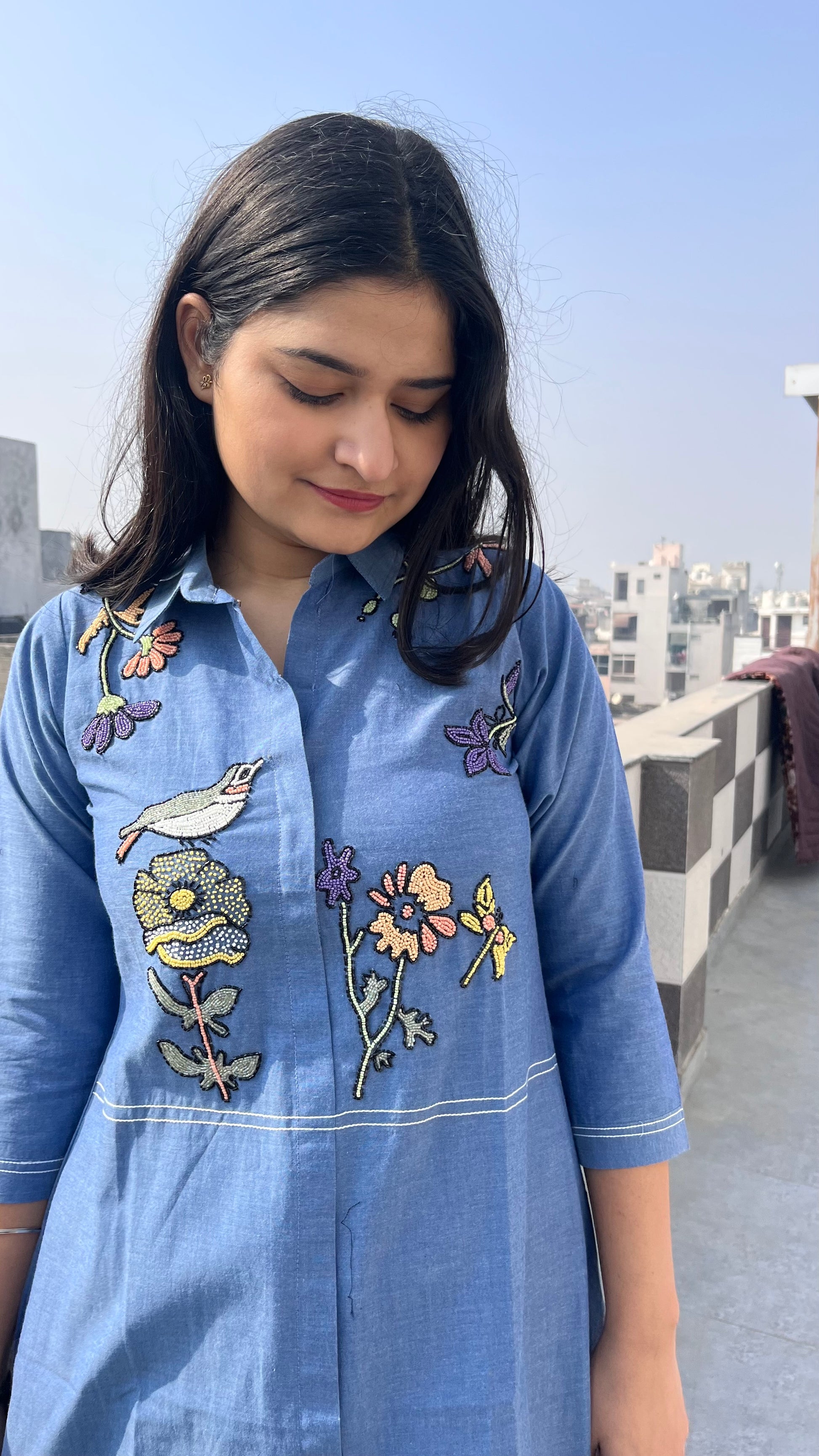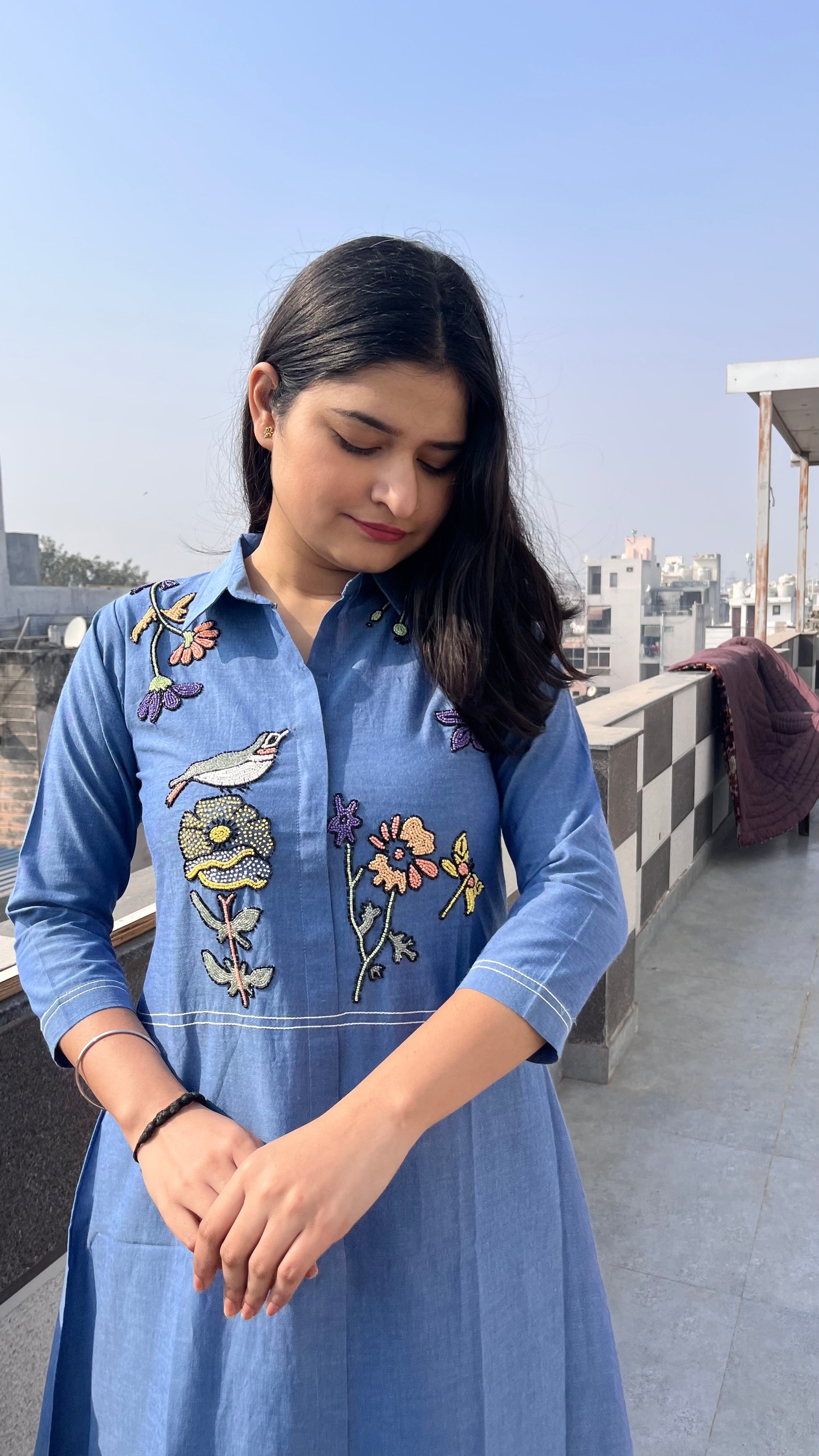 - Handloom fabric with beautiful moti hand work.
