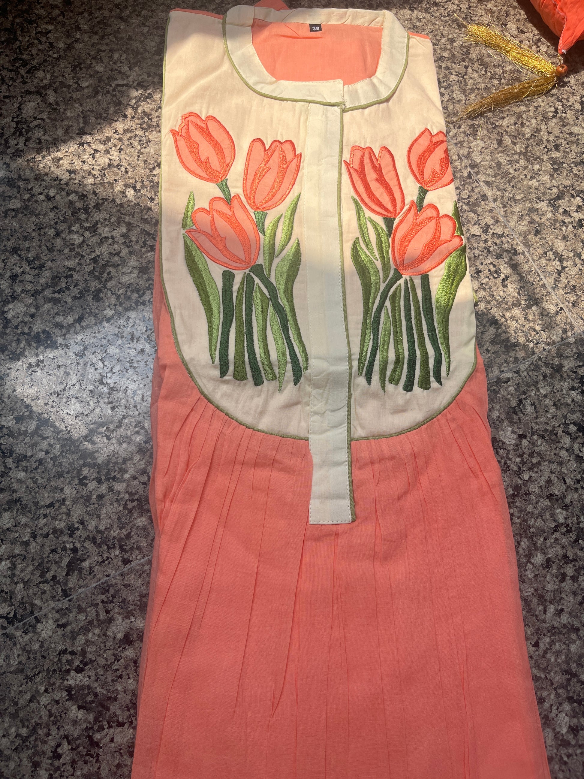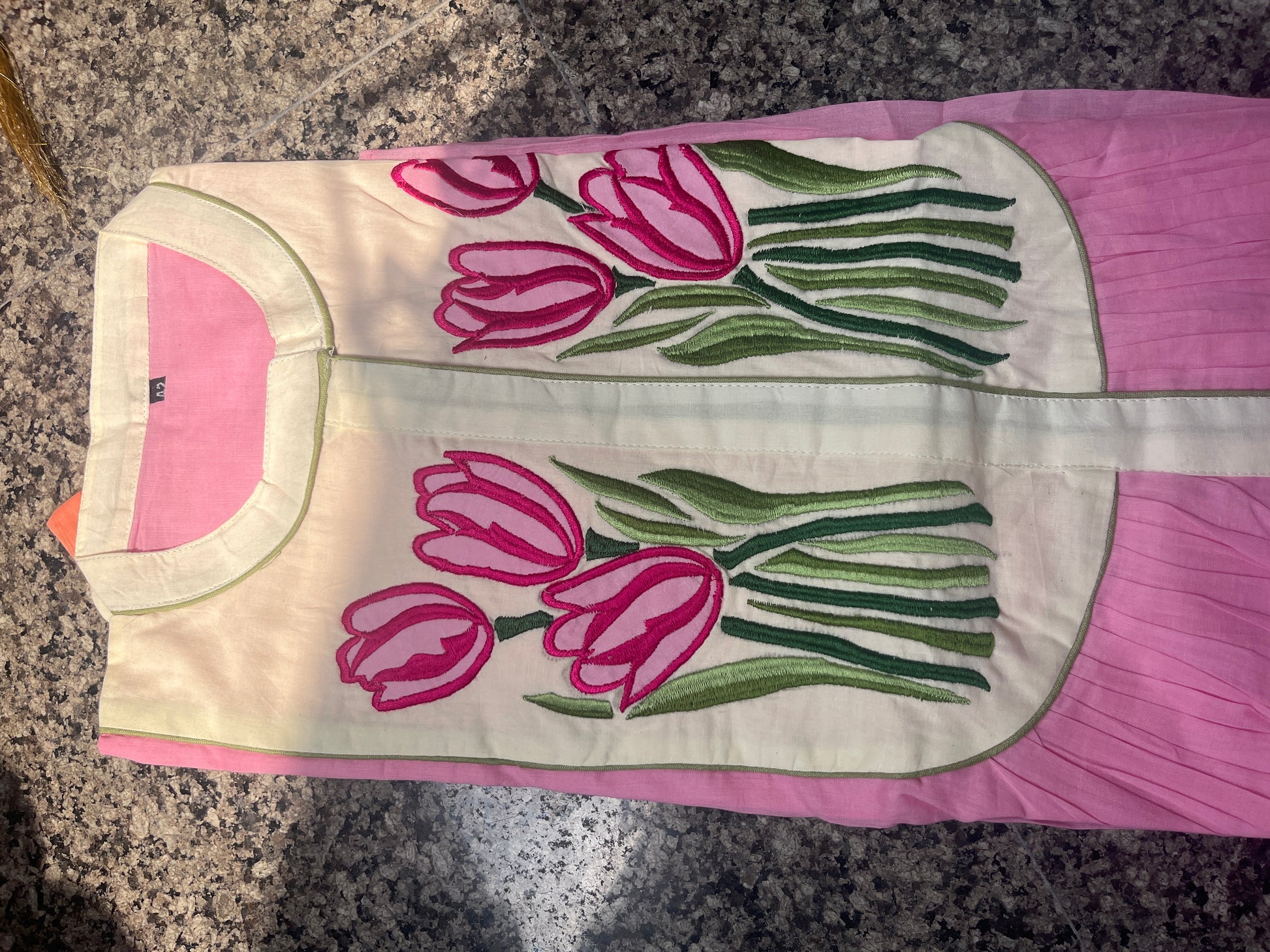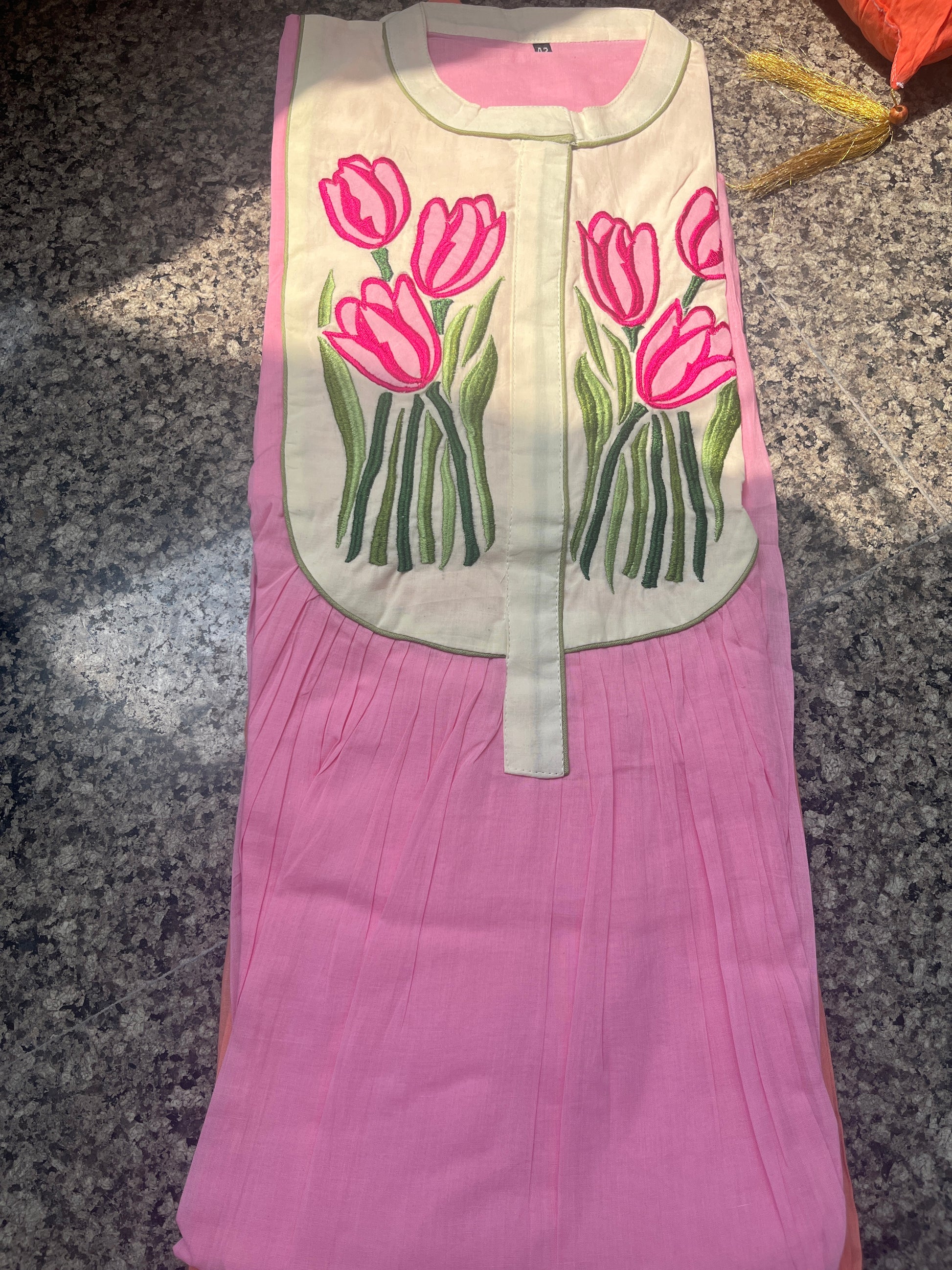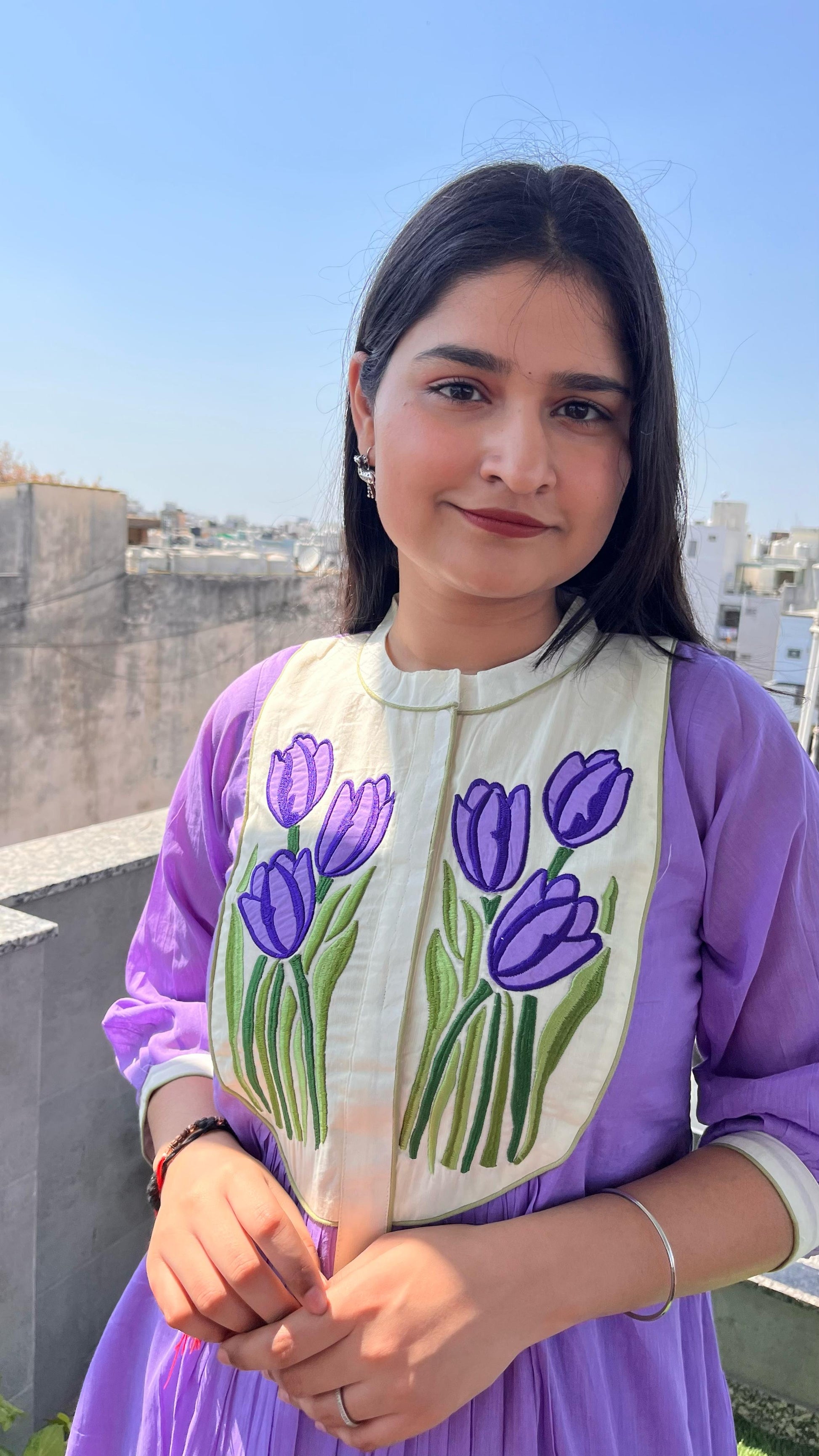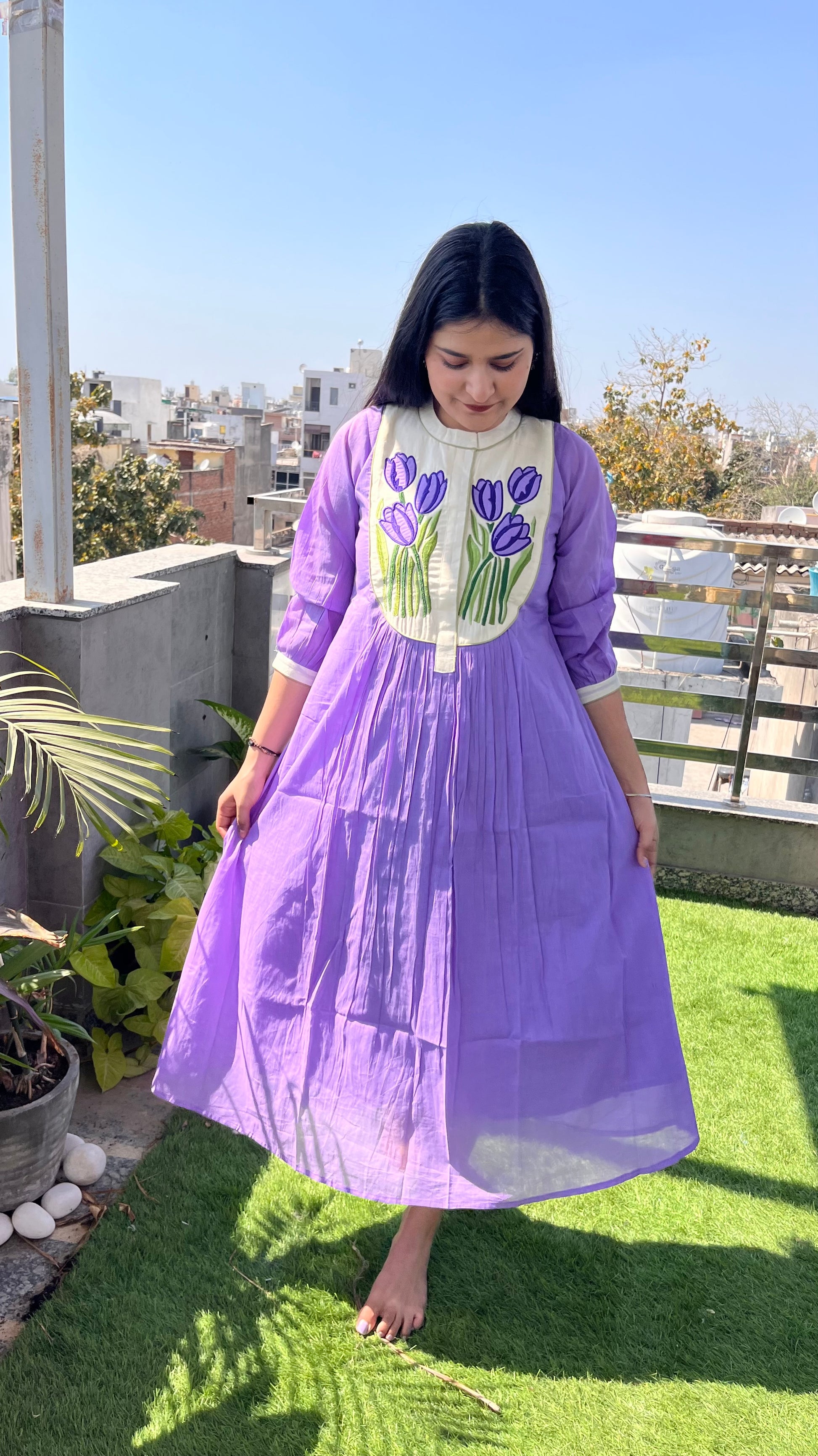 Elevate your style with this beautiful hand-embroidered lilac dress, made from pure mul mul fabric.