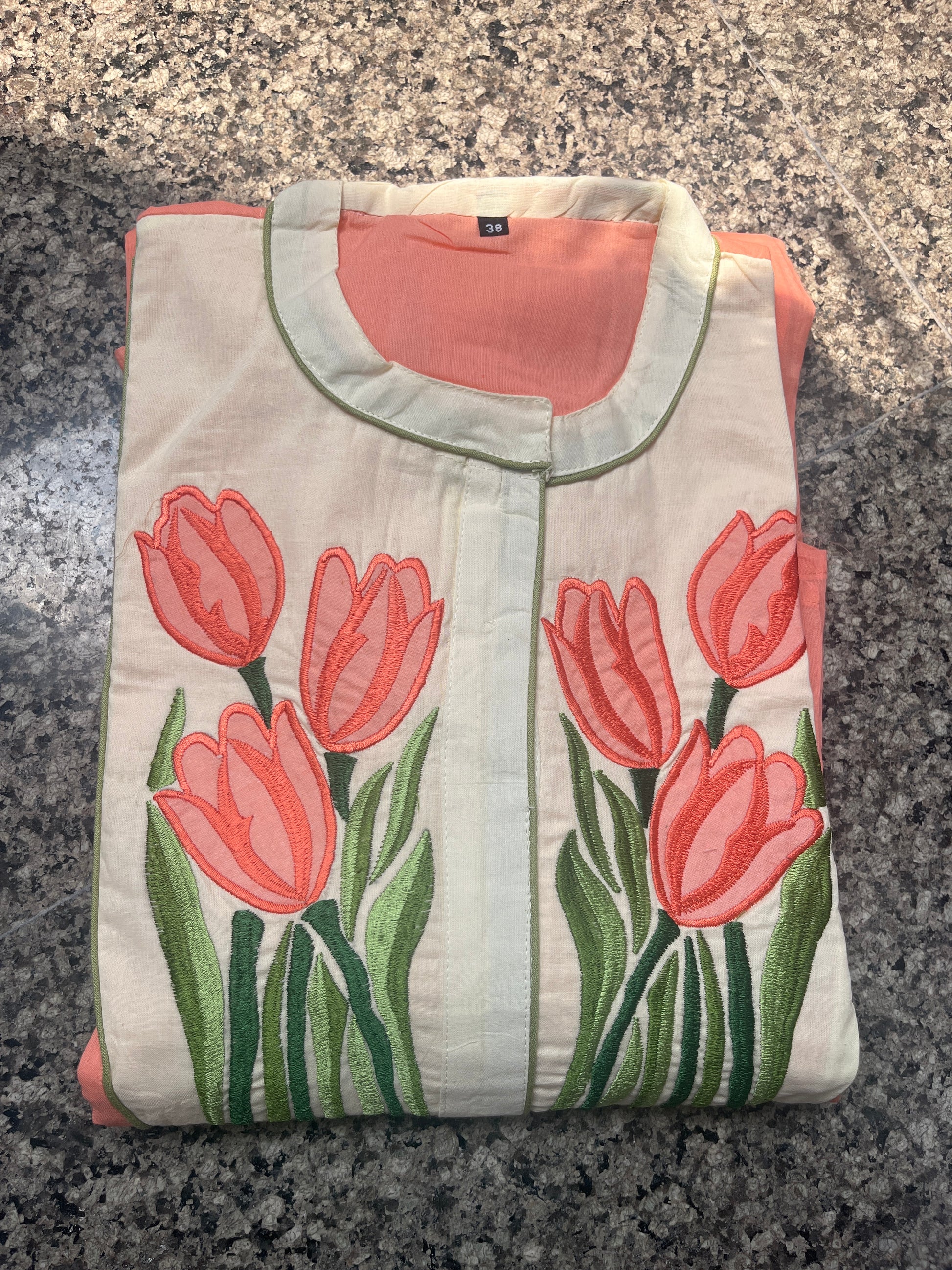 - It showcases stunning appliqué work that looks like hand-painted artistry.