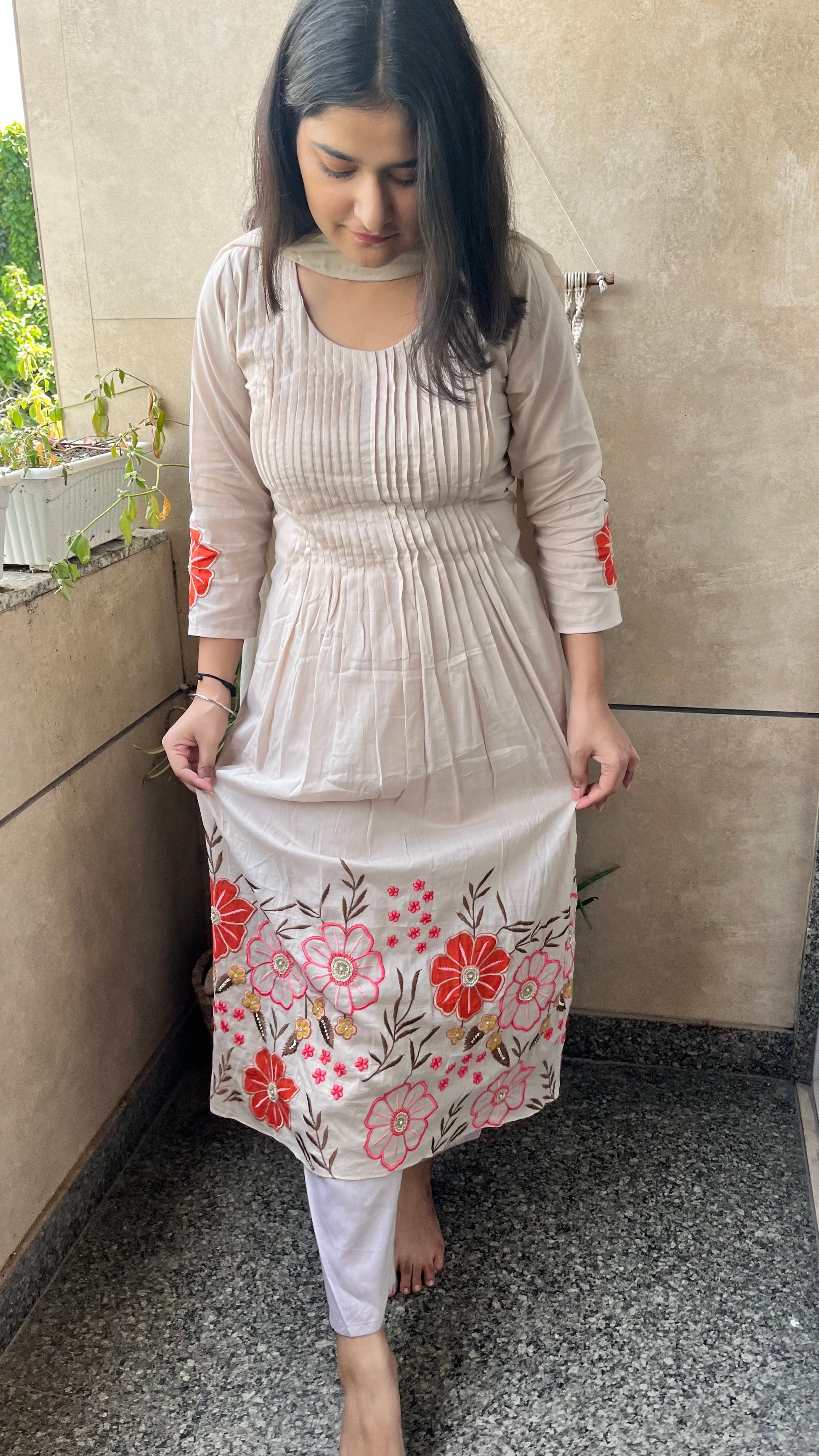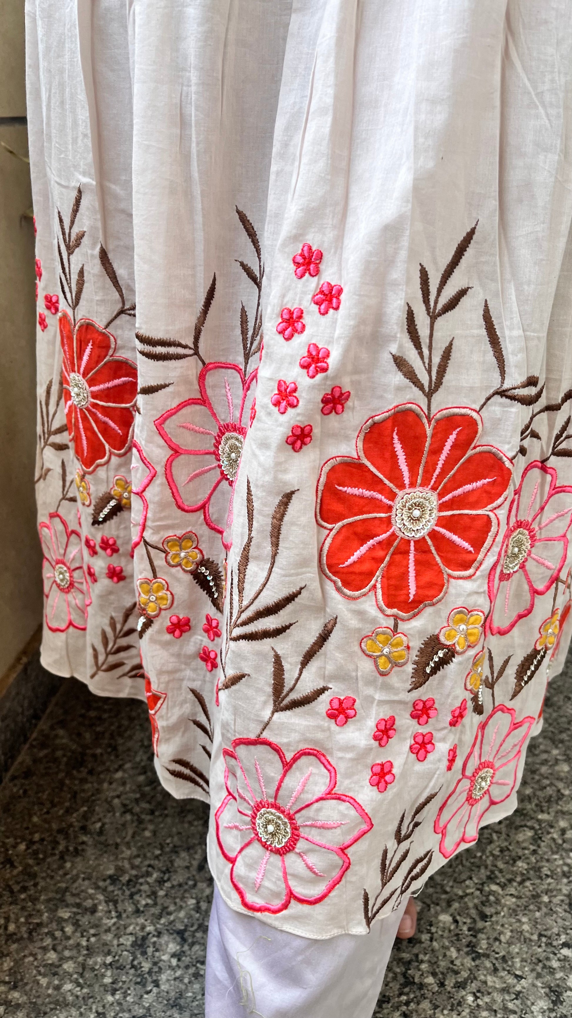 Kurta is having beautiful appliqué work and sequence